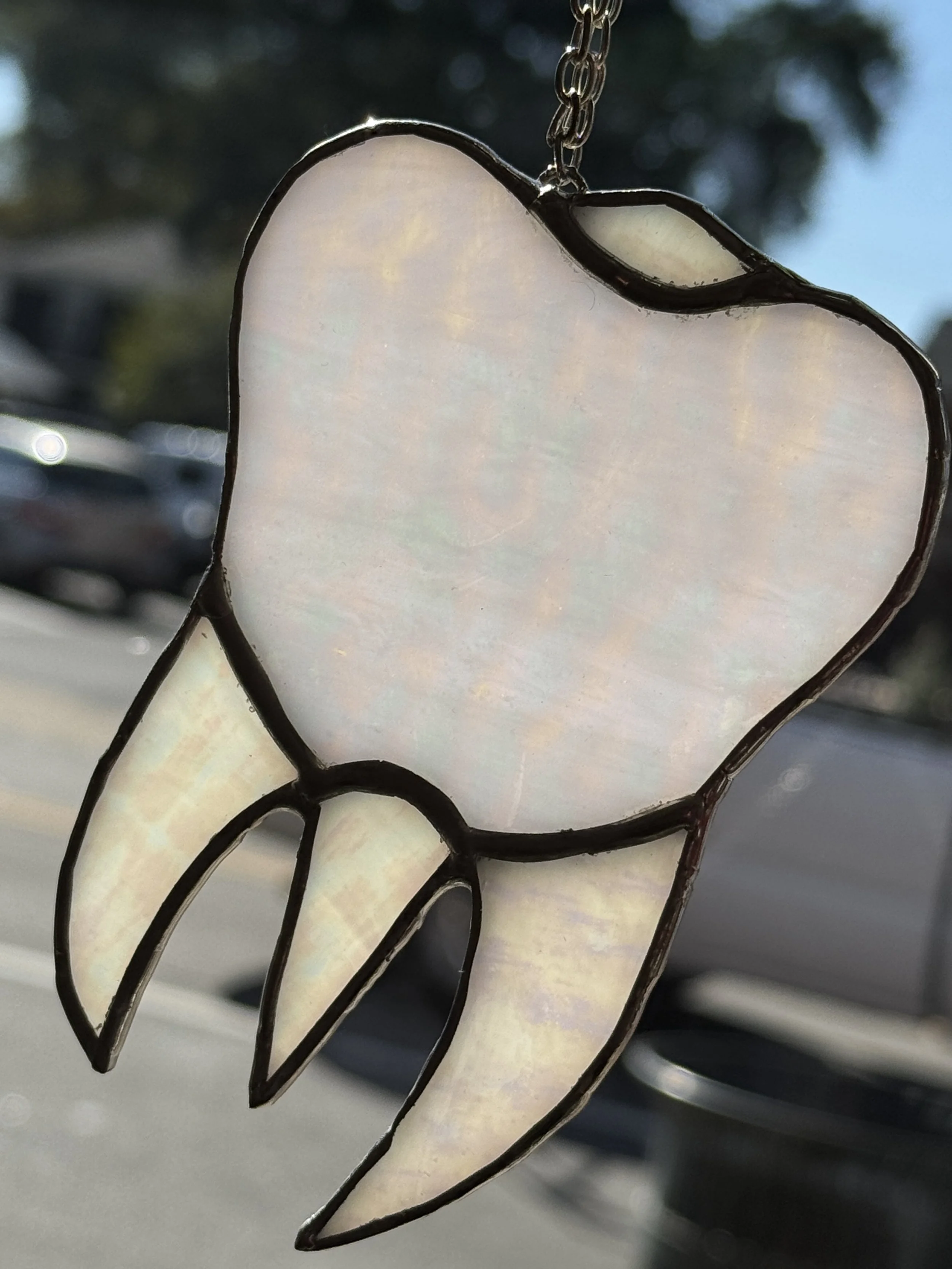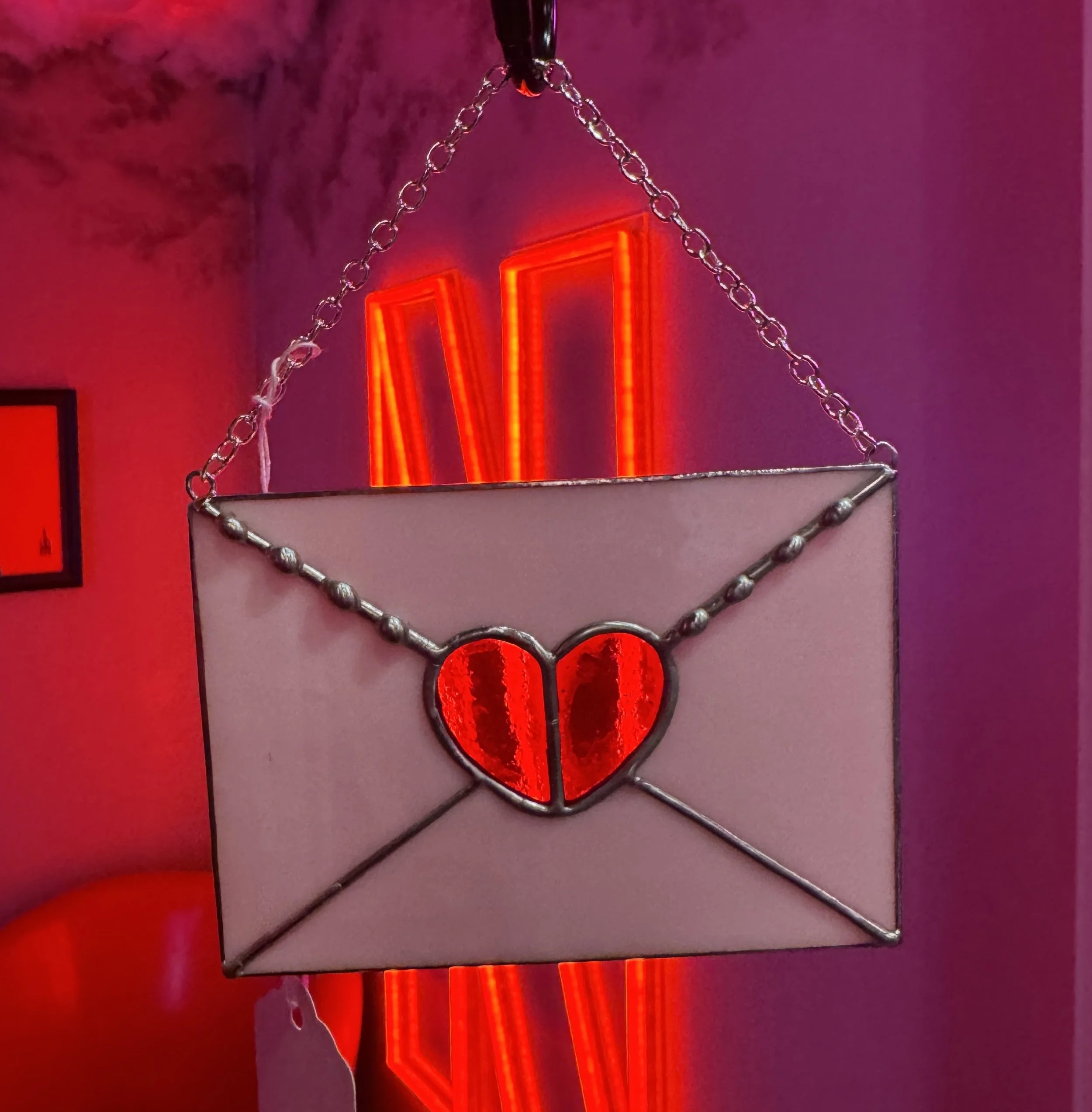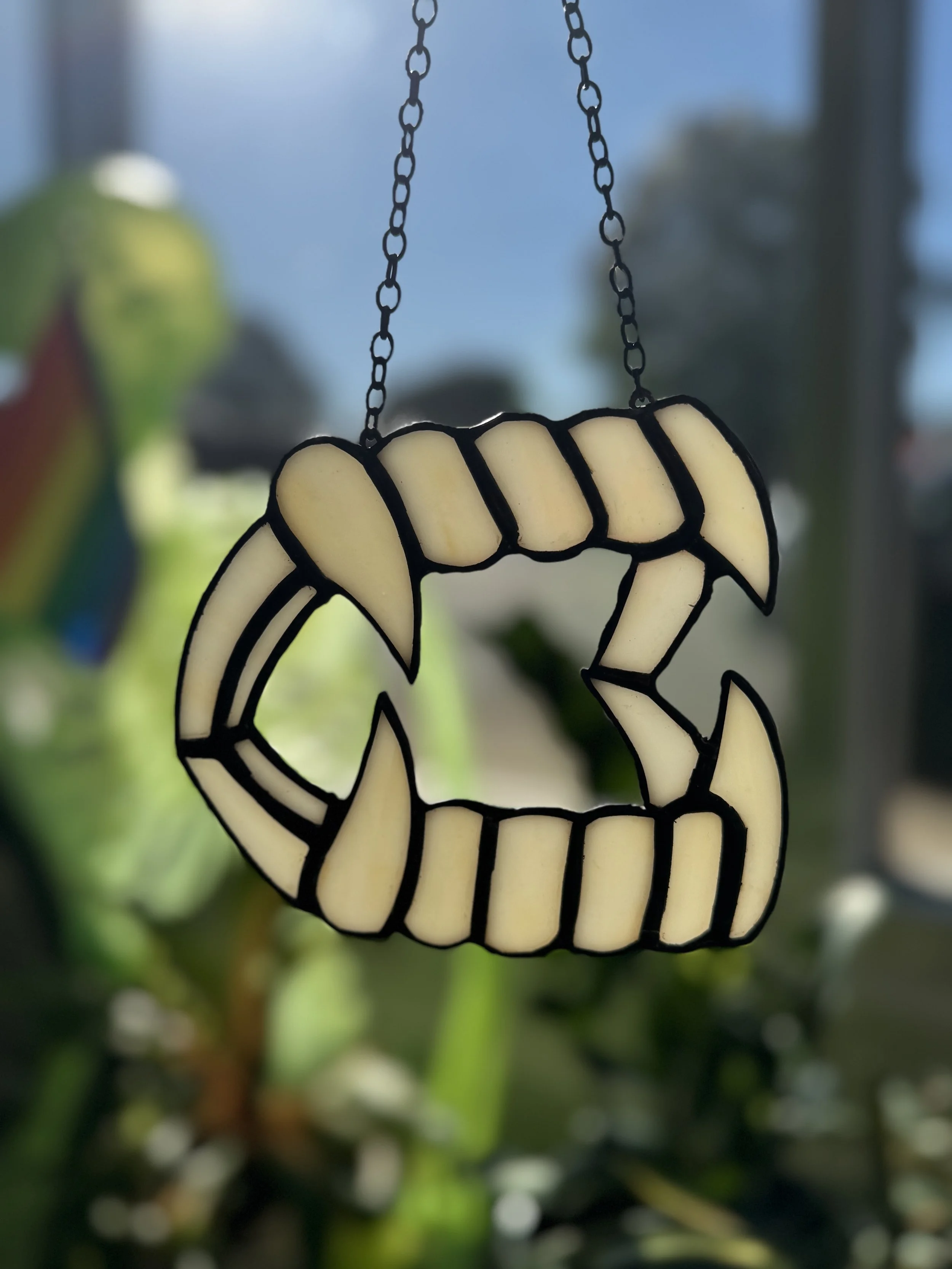 Staff favorites include her “Toy Vampire Teeth,” “Anatomical Heart,” and “Love Letter” stained glass pieces!
