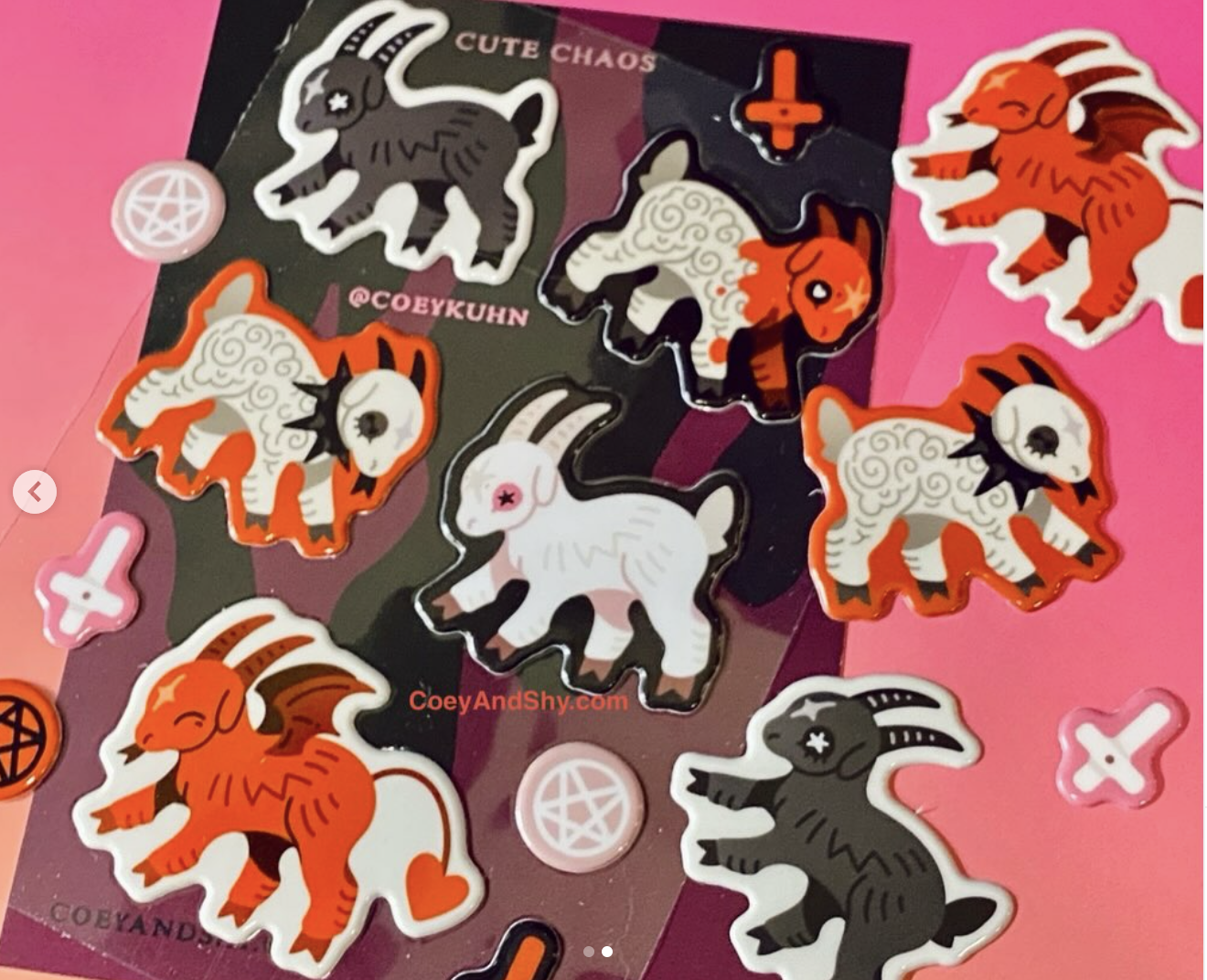 Staff favorites include their “NOT a Werewolf” hats, “Cute Chaos” sticker packs, and super cool Wax Seal pins!